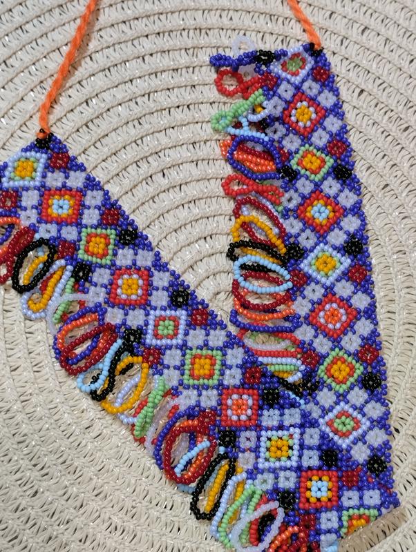 Традиционное украшение силянка, яркая и стильная, будет отличным дополнением к вашему образу.Выполнена из чешского бисера высокой сорта.Длина-34 см.,ширина-5 см.
