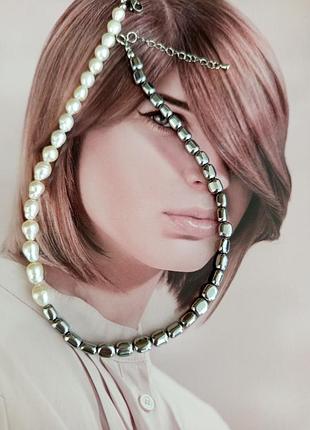 Натуральные жемчуги 7*6 мм, гематит форма рис 6*5 мм, длина 37,5 см, удлинитель 5 см, вся фурнитура родовая