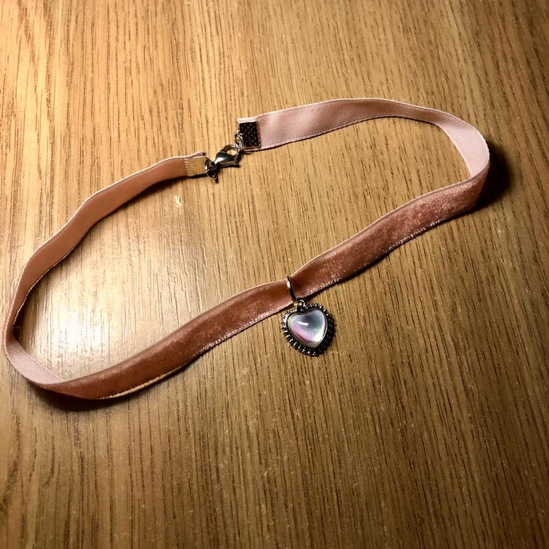 Чокер з сердечком -луний камінець -велюрова стрічка -довжина 33 см