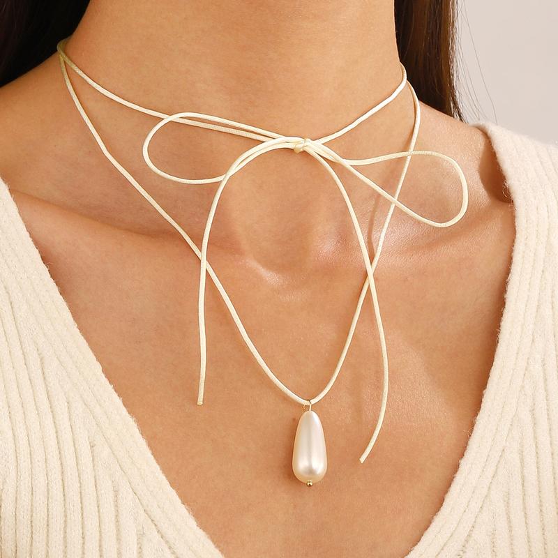 Трендовый чокер шнурок на шею с подвеской имитация жемчужины