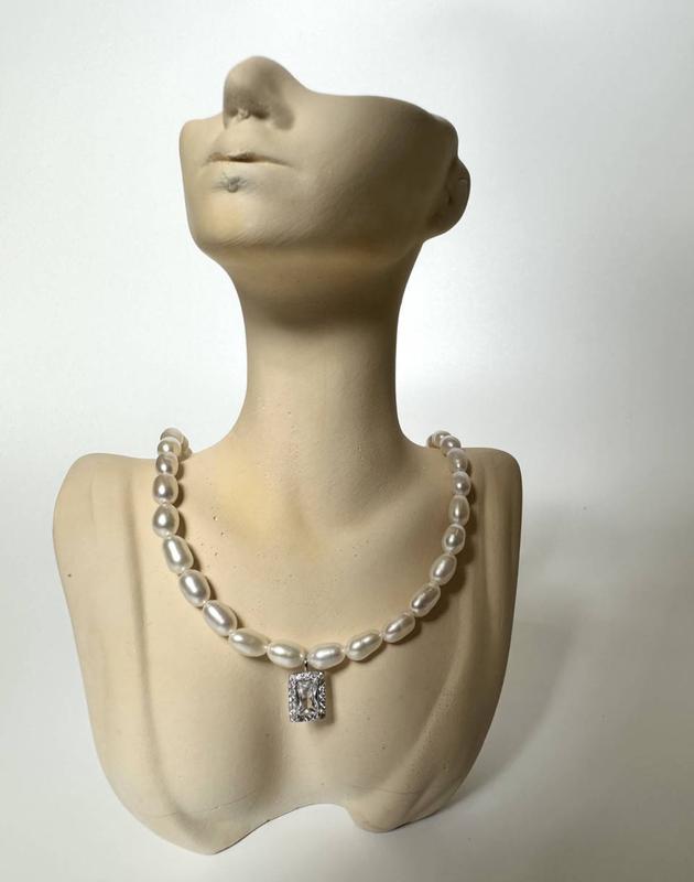 Ожерелье из натуральных жемчуга с фианитом и чокер из серебра 925 пробы, два коротких серебряных цепочки. Перлина