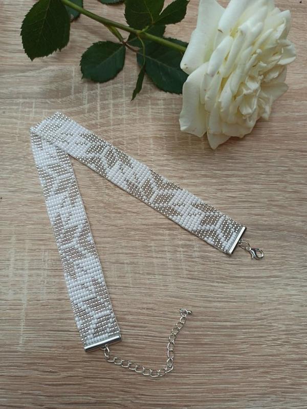 Ленточный гердан чокер на шею белый чекер из бисера модный чокер