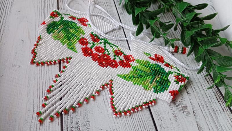 Украшение женское, ленточный гердан с подвесками, калина "