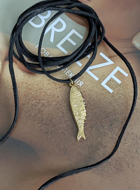 Стильный чокер с подвеской рыбка Материал - искусственная замша, нержавеющая сталь с позолотой Длина шнурка 120 см размер подвески 4 см на 1 см К заказам на сумму от 400 грн. Вы получите дополнительное украшение в подарок🎁 Часть доходов от продаж мы направляем на помощь ССУ💛💙