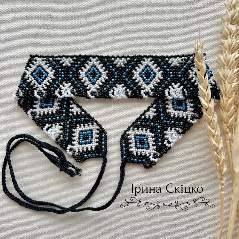 Це прикраса, яка однаково гарно виглядає з вишиванкою, сукнею чи навіть повсякденним луком. Чокер з орнаментом – універсальний символ стилю, що поєднує автентичність і сучасність. Довжина бісерного полотна-35см + завʼязки Ширина - 3,5см