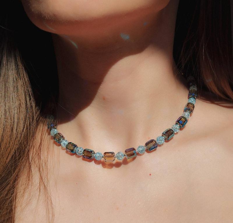 Чокер чешский хрусталь люкс + сахарный кварц голубой
