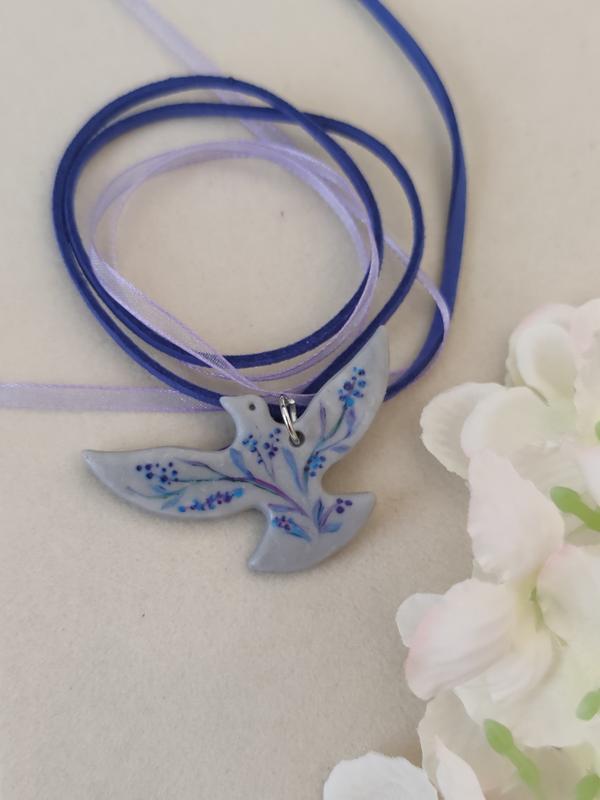 Птичка ручной работы, подвеска пташечка чокер горлица, с росписью