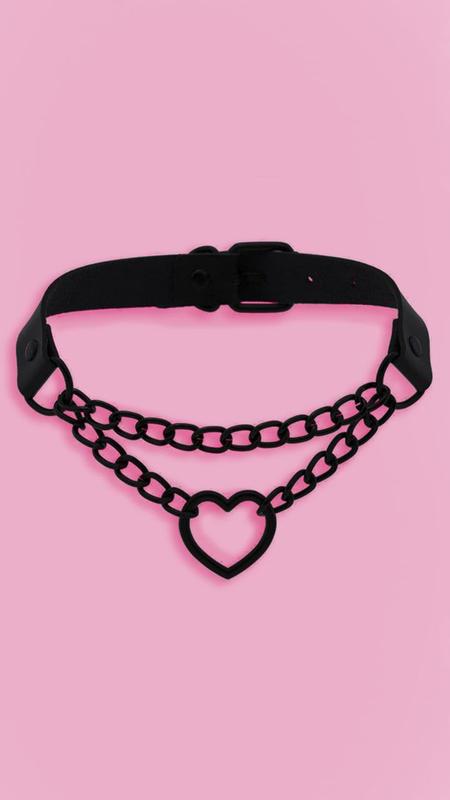 Черный чокер с металлическим сердцем на цепочке – спелый аксессуар, который подчеркнет ваш образ. Ремешки отголоски из прочной полиуретановой кожи, подложенные приманкой текстильной подкладкой, которая мгновенно принимает темературу тела, обеспечивая комфорт. Фурнитура отлит из гипоаллергенного цинкового сплава без никеля и свницы, не ржавеет и выдерживает активное использование. Долина изделия 45 см, ширина основного ремешка около 2см, размер сердечек – 3,5 см. Регулируется при полосом пряжке в шести размерах, что позволяет подобрать идеальную посадку.