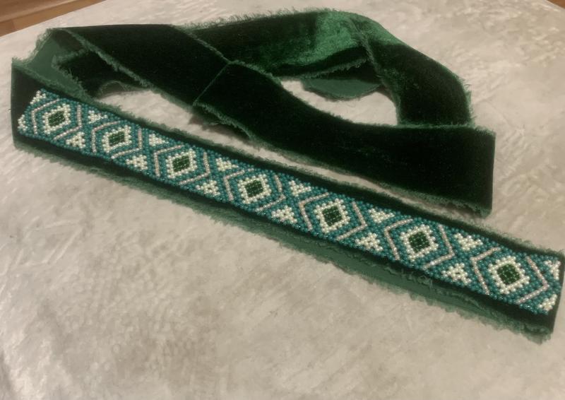 Гердан ленточный Ручная работа,ческий бисер.длина гердана 22см прикреплен на бархатную ленту длиной 85 см