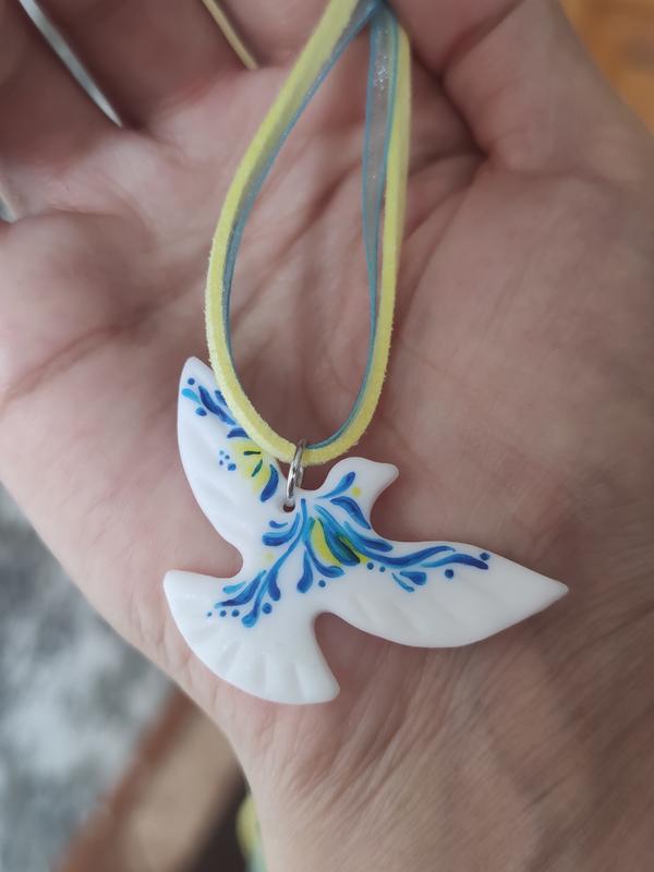 Нова Птичка изготовлена из полимерной глины, с ручной росписью, покрыта лаком (для защиты) Ленты бантовые длиной 1,5 м. Або Замшевый шнурок длиной 1 м. Доставка Новой и Укр-почтой 📦 Можно оформлять через Шафу, будет дешевле доставка.