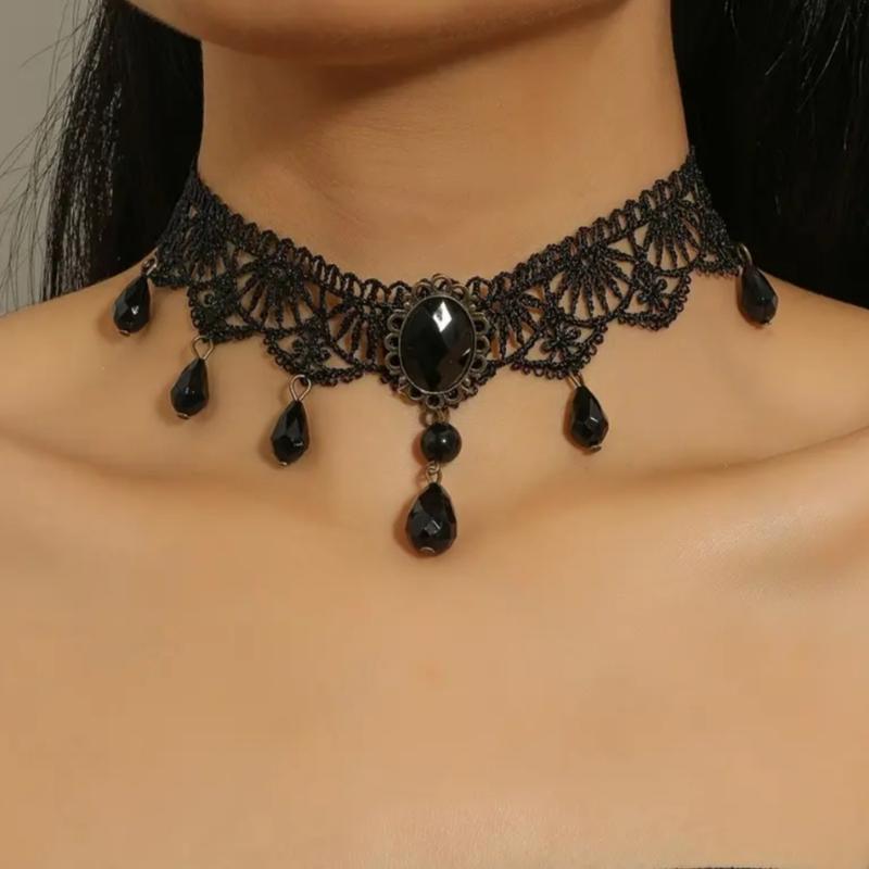 стильный черный кружевной чокер в готическом стиле общая длина с цепочкой 43 см ширина 2,5 см отправка каждого дня 🚛