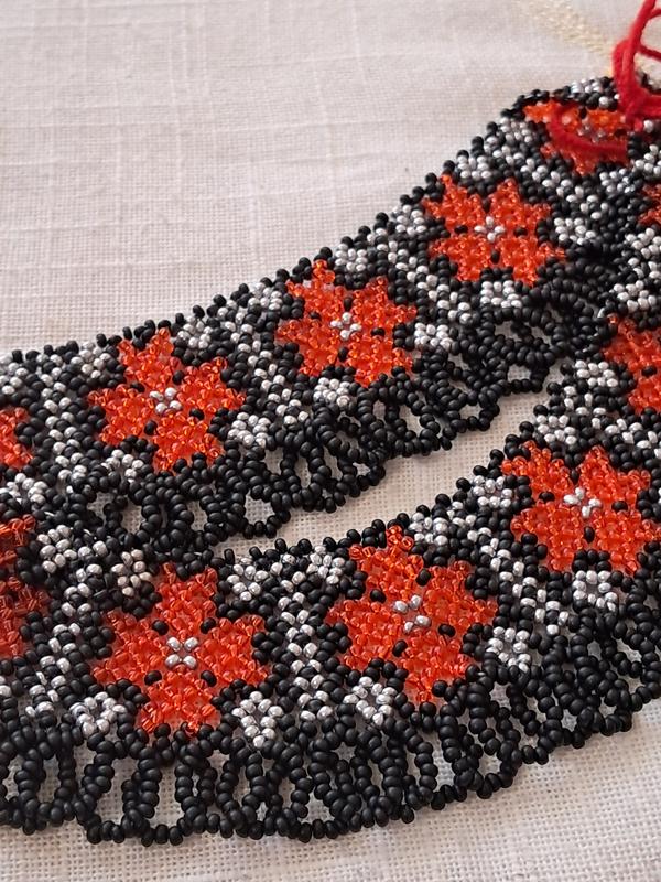 Силка из чешского бисера. Длина 37 см, ширина 4.5 см. Размер украшения регулируется завязками.