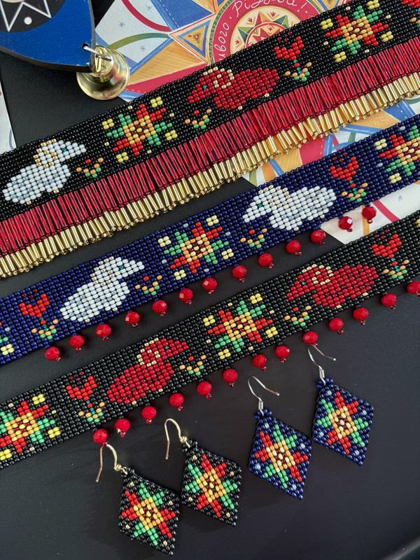Гердан стрічковий з бісеру з різдвяний та сережки