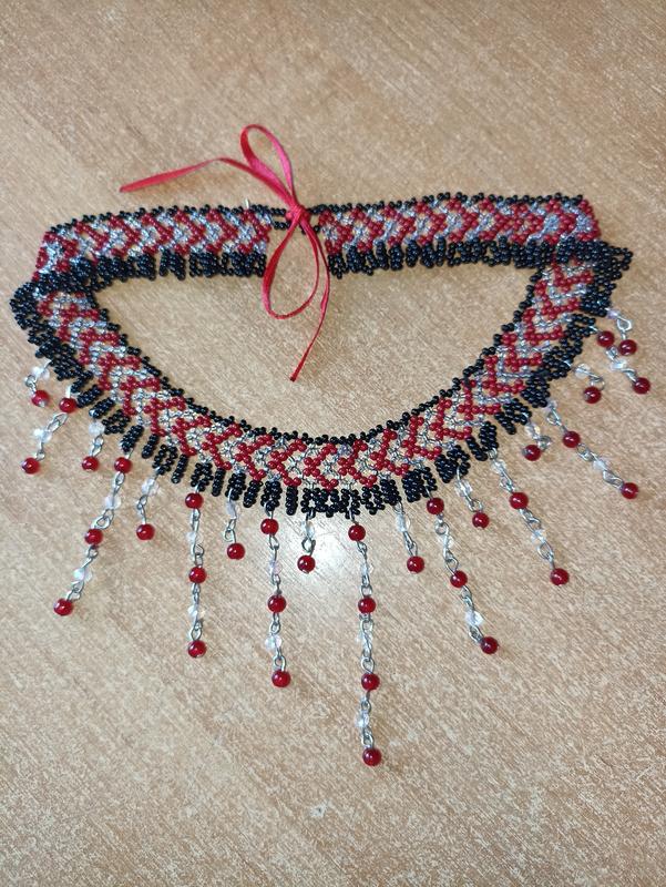 чокер -кольє із бісеру, з звисаючими низками із намистин . Ручна робота ( можливе виконання у інших кольорах ) стане гарним доповненням до образу та підкреслить вашу жіночність .