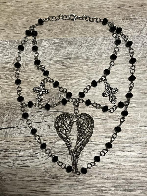 Готичне кольє-чокер ручної роботи(біжутерія). На другому фото можна побачити що намистини скляні та грановані. В розкритому стані як на третьому фото довжина кольє 37 см. Дуже гарне, як для готичної принцеси).