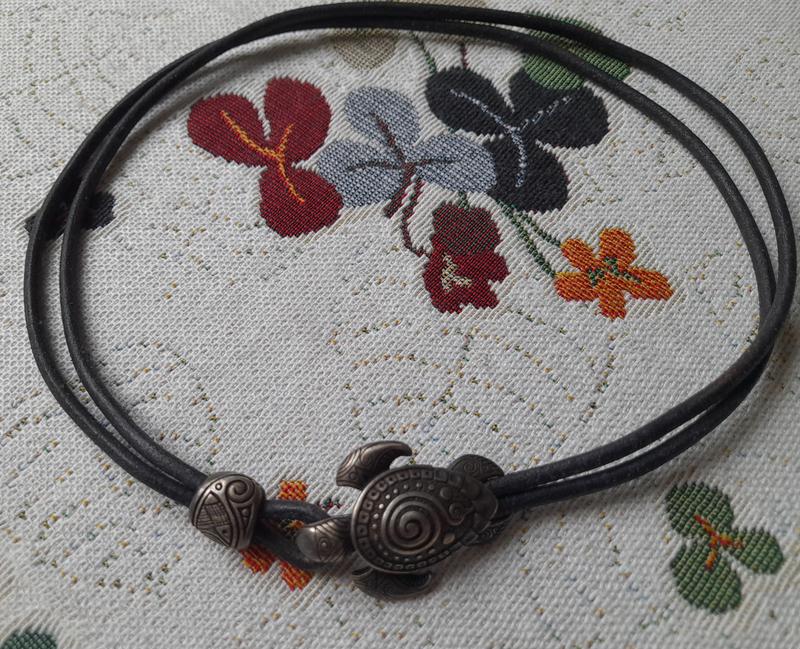 Общая длина 40 см, черепаха 3,3 х 2,5 см. Застежка хорошо держит.