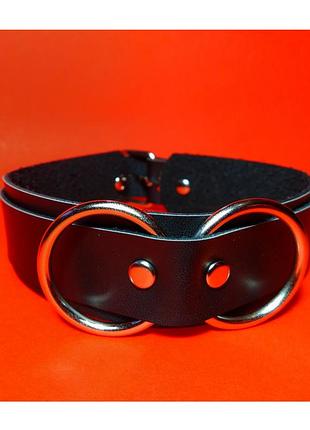 Чокер з кільцями. Можна використовувати як нашийник до повідця😏 Ширина чокера 28 мм. Діаметр кілець 25 мм Можна зробити в червоному кольорі. Розмір регулюється, робимо по Ваших мірках.