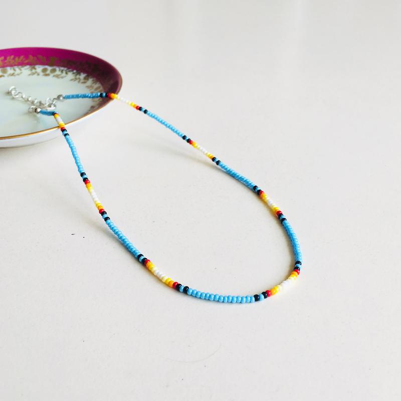 Голубой чокер из бисера, бисерные чокер, украшение на шею из бисера