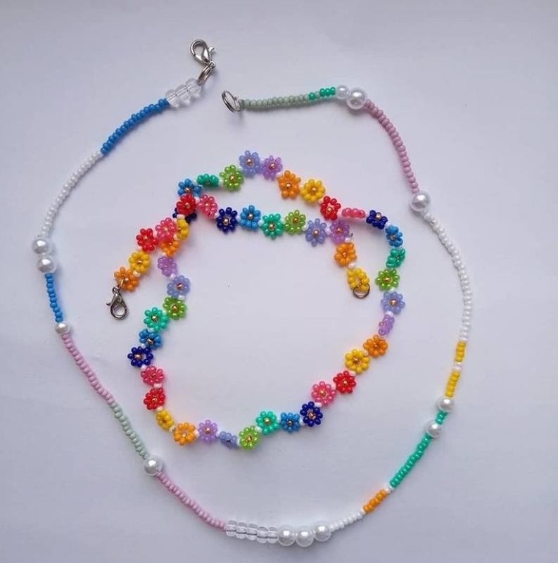 Чокер из бисера цветные ромашки. Длина 41см.На шее смотрится очень красиво. Так же делаю на заказ на Ваш вкус и цвет.