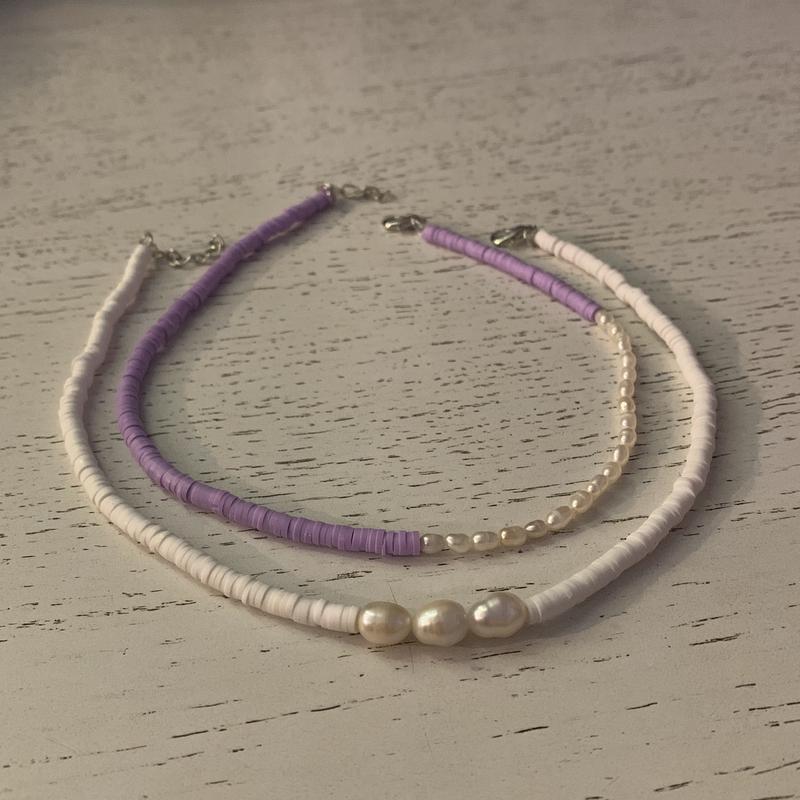 Ручна робота Чокер з натуральними річними перлинами та плоскими бусинами. Також є в інших кольорах Діаметр плоских бусин як на фото~4 мм