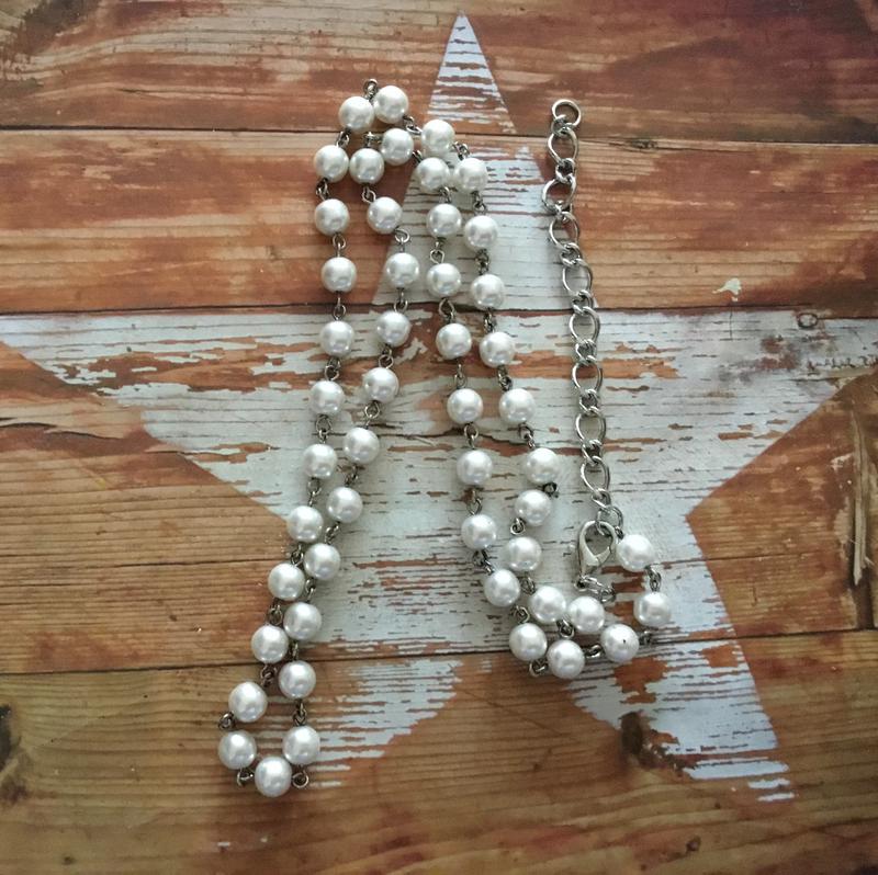 Длинна 66 см+дополнительная цепочка 10 см. Бусины имитирующие жемчуг в отличном состоянии без царапин . Можно носить как в один так и в два оборота, как чокер.