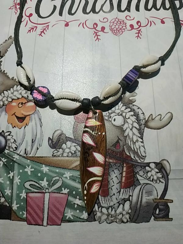 чокер африканский с ракушками и деревянной подвесткой.вручную украшенной лепестками из красок.чокер с помощью дополнительной цепочки может превратиться в очаровательные бусы
