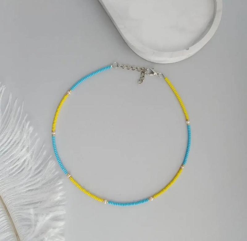 Основа ювелирный тросик. Длину можно подобрать индивидуально под ваш обхват шеи. Цвет можно подобрать индивидуально.