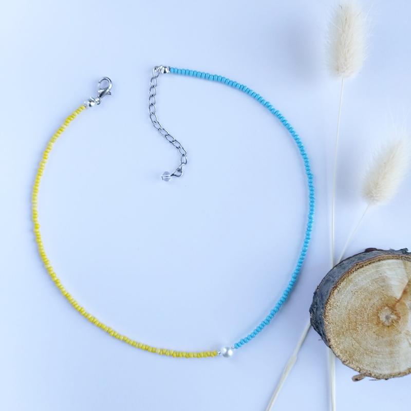 Крутий Чокер із бісеру у патріотичних кольорах Довжина 35см плюс ланцюжок