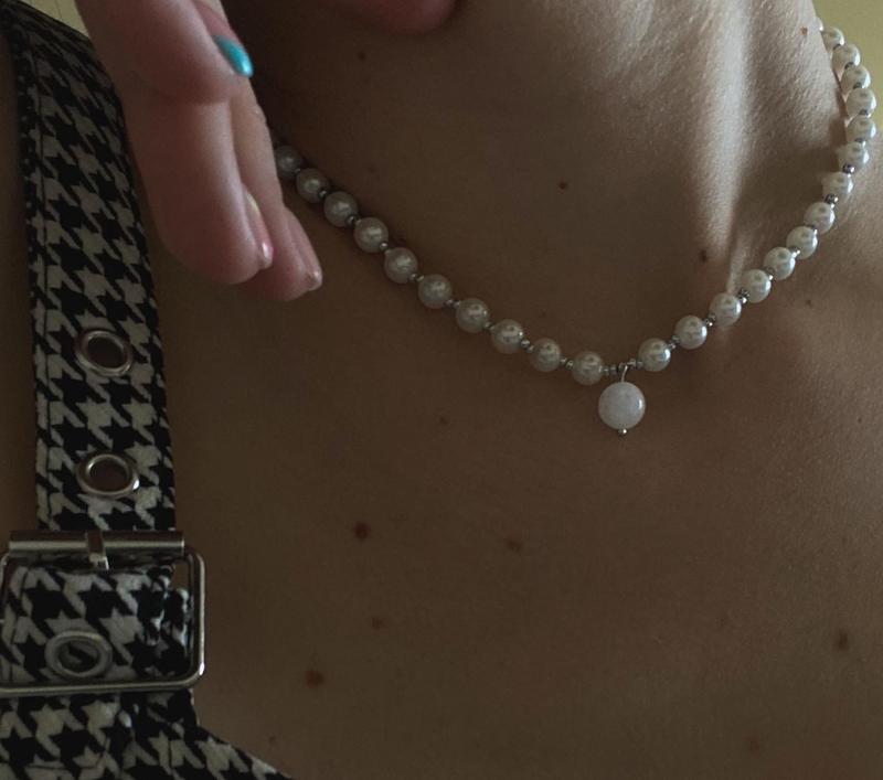 Чокер з акрилових бусин і бісеру preciosa і з підвіскою з натурального каменю нефрит