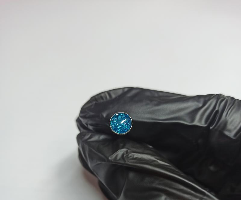 Цена указана за 1 штуку. Автоматические заказы отклоняю, пишите пожалуйста в сообщениях. Цвет - серебро , накрутка голубые блёстки. Отправка товара Новой или Укр почтой, после оплаты на карту. Доставку оплачиваете при получении. Материал медицинская сталь 316 L Размеры толщина изделия 1.6 мм Длина 16 мм вставка 7 мм В наличии много другого пирсинга. Товар не подлежит обмену или возврату, делайте свои заказы обдуманно.