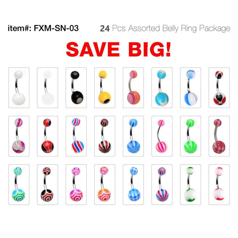 Набір 24 шт. сережка банан для пірсингу пупка з акриловими кульками