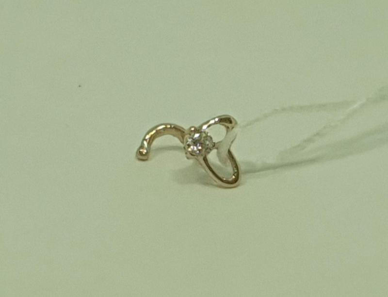 Золотая серьга-пирсинг в нос с фианитом. артикул 311140