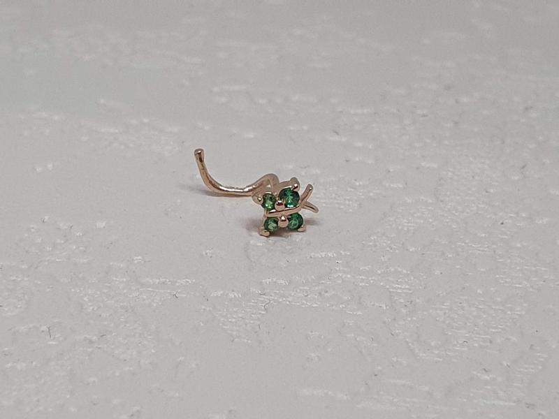 Серьга-пирсинг в нос из красного золота 585 пробы с фианитами Серьга-пирсинг в нос из красного золота 585 пробы выполнена в классическом дизайне. Она имеет небольшие размеры, поэтому очень удобна и никогда не будет выделяться из общего ансамбля аксессуаров. Золотая серьга-пирсинг подойдет для молодых девушек, которые хотят подчеркнуть свой особый стиль и при этом всегда оставаться нежными и элегантными. Средний вес изделия - 0,25 г Вес конкретного изделия уточняется при подтверждении заказа