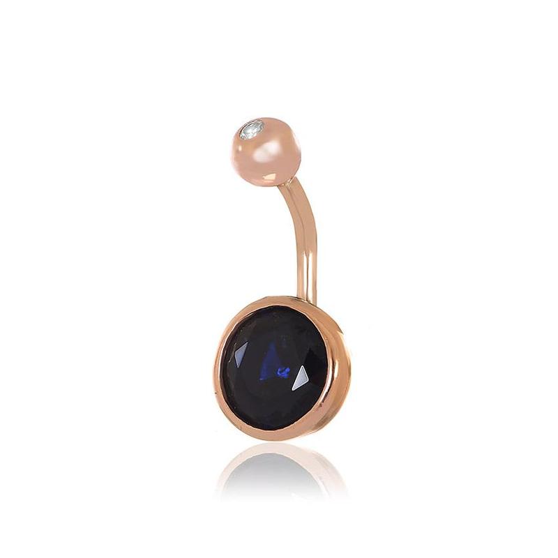 Серебряный пирсинг в позолоте с синими фианитами