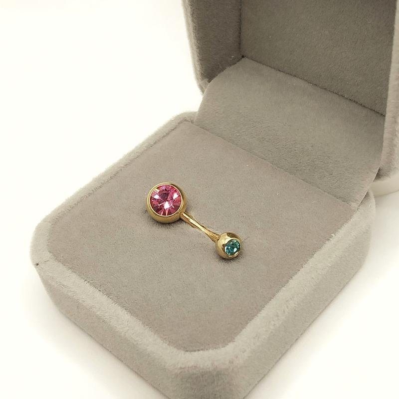 Оригинальный пирсинг для пупка "Розовый и голубой цирконы в золоте" - классическая модель "банан" в форме сферы из ювелирной медицинской стали с покрытием золотом и цирконов в бархатной коробочке Главной изюминкой этого пирсинга являются сияющие цирконы розового и голубого цветов под натуральный камень топаз. Они игриво переливаются на свету и это создает захватывающий эффект и придает пирсингу особый шарм. Основным материалом этого пирсинга является ювелирная медицинская сталь, которая обеспечивает не только прочность и долговечность, но и гарантирует безопасность для вашей кожи. Это важно при выборе пирсинга, так как он должен быть не только красивым, но и безопасным для вашего тела. Форма сферы, выбранная для этого пирсинга, придает ему нежность и гармонию. Сферический элемент отлично сочетается с формой пупка и создает изящное соприкосновение линий. Благодаря этой форме, пирсинг будет выглядеть гармонично и естественно на вашем теле. Вот наши авторские фото и видео, снятые с реальных моделей и украшений: ### Оформление украшения в базовой комплектации наглядно показано на главном фото на сайте магазина. Наши авторские фото и видео охраняются законом! У нас - прямые поставки со склада производителя, что позволяет Вам приобрести новинки качественных недорогих украшений по выгодной цене в Украине! Достоинства модели Не окисляется и не облазит Не раздражает даже чувствительную кожу Достойная замена дорогим украшениям из серебра, золота и бриллиантов Камни в украшении: синтетические бриллианты - цирконы или фианиты; они не отличимы невооруженным глазом от природных и имеют аналогичную форму, огранку и блеск с характерным внутренним отражением и преломлением, играют всеми цветами радуги при ярком освещении! Все изделия проходят сертификацию и являются полностью безопасными в использовании. Уход за бижутерией Изделия будут долгое время радовать своих обладателей при правильном уходе и аккуратном обращении. Для этого необходимо: - беречь от повышенных механических нагрузок (трения и давления, ударов, царапин и тому подобное) - избегать контакта с агрессивными химическими веществами, особенно с хлором и серой, ртутью и йодом - снимать украшения перед мытьем посуды, уборкой с применением бытовой химии, а также перед нанесением лака на волосы и крема на кожу Для продления срока службы постарайтесь снимать украшения перед занятием спортом, принятием солнечных ванн, водных процедур и перед сном. Для очистки от загрязнений промойте изделие в воде с жидким мылом или шампунем (можно использовать мягкую зубную щетку), потом - в чистой воде и вытрите мягкой сухой тряпочкой Размеры изделия небольшие и подходят большинству людей: - штанга 10 * 1,6 миллиметров - шарики 8 и 5 миллиметров Мы можем сделать по Вашему запросу замеры изделий в Вашем заказе. Они не претендуют на высокую точность, так как делаем их в ручную. Пожалуйста, обратитесь к нам за дополнительной информацией. Вы можете выбрать другой вариант комплектации украшений с помощью дополнительных фото на сайте. Пожалуйста, уточните цену и наличие выбранных вариантов перед оформлением заказа. Кроме того, дополнительно мы можем подобрать для Вас подарочную упаковку (ссылка активная) с учетом ваших пожеланий! Оплаченные заказы отправляем из нашего реального магазина в Черкасс