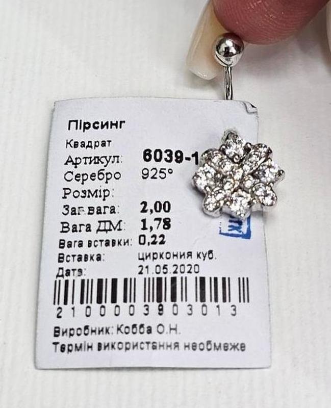 Пірсинг срібний 6039 вкритий родієм