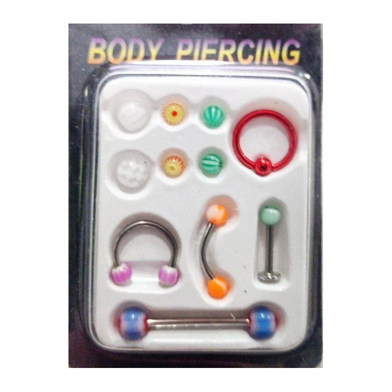Комплект для пірсингу Склад набору: - штанга 16мм - лабрет 8мм - мікробанан 8мм - циркуляр/підкова 8мм - кільце з кулькою 8мм - змінні вкрутки 6 шт
