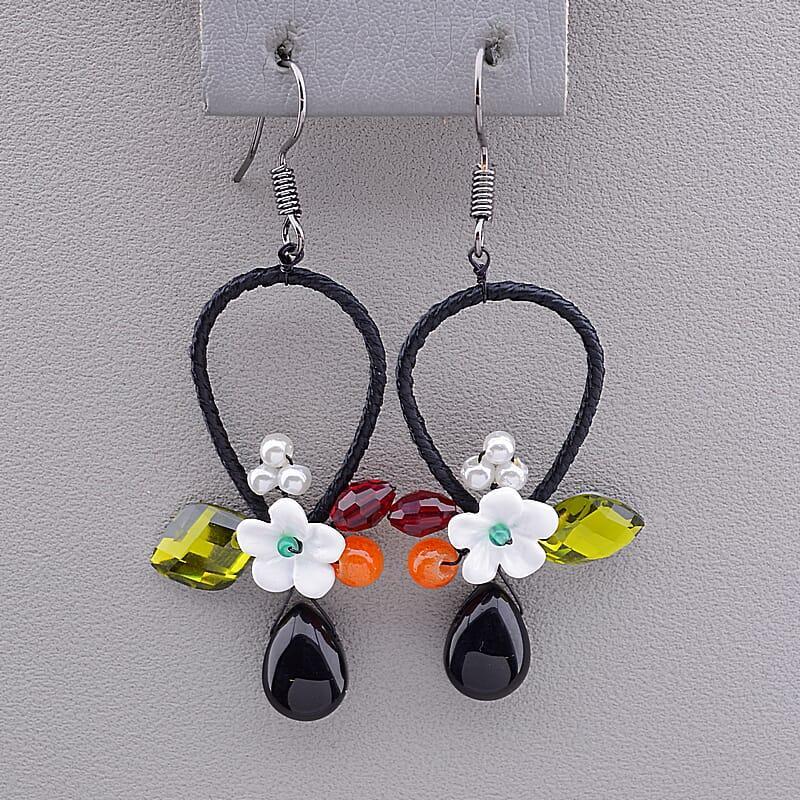 Размер серьги: 35х16 мм. Бренд: Fashion Вес: 8 г. Камень: Агат(нат.) Камень2: Чешский хрусталь Качество: Хорошее Материал: Бижутерный сплав Покрытие: гипоаллергенное Цвет: Черный