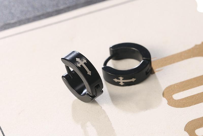 Серьги-кольца из стали с крестами черные 9*14 мм 2шт