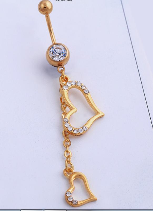 Украшение для пирсинга пупка позолота Сердце Материал: медицинская сталь, покрытие золото 18к горный хруталь - Material:316L Surgical Steel - Bar length:1.0cm - Total Length:4.7cm - Pendant Size:3.25cm - Bar diameter:0.5cm