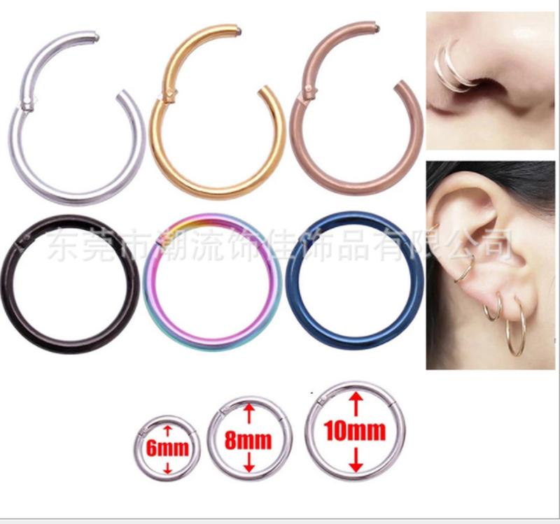 Cерьга кольцо для пирсинга (носа,ушей,губ) 6 8 10 мм цвет: серебро,золото перламутровый,роз золото,синий Назначение может использоваться для пирсинга носа, губы, ушей, сосков, гениталий Вид изделия Кольцо Материал мед сталь Размер: толщина 1,2 мм