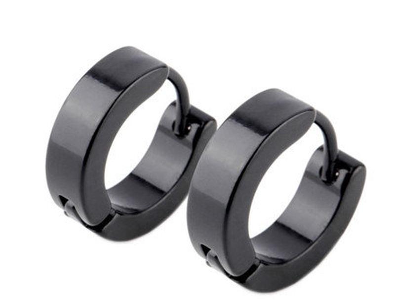 Серьги круглые черные для пирсинга ушей сталь в два уха 2шт
