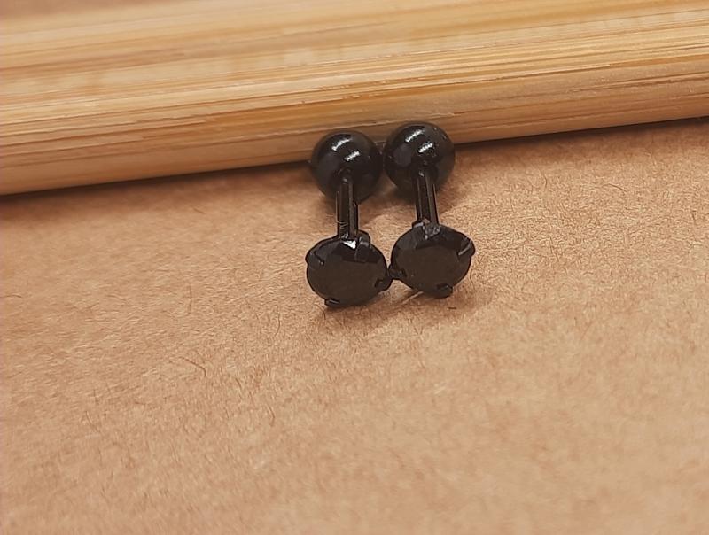 Серьги микроштанги для пирсинга. Унисекс. Подойдут как для мужчин, так и для женщин и девочек. Материал: медицинская сталь с покрытием Отделка: камушки Цвет: черный Размер1.2×6мм Резьба: внешняя Стоимость : 150 грн / пара