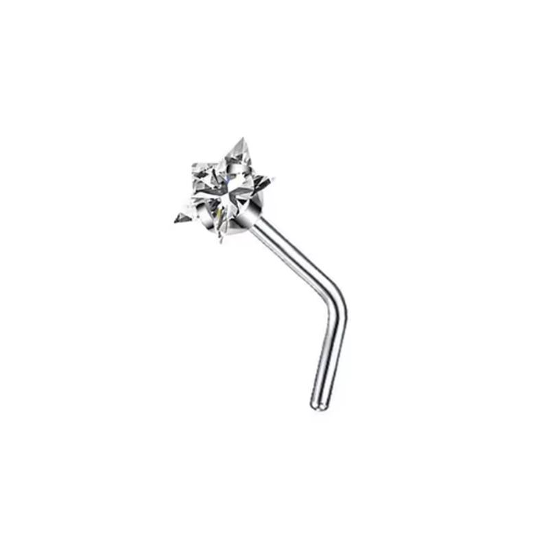 Сережка пирсинг нострел finding для носа согнутый звезда страз 3 мм х 3 мм нержавеющая ста...