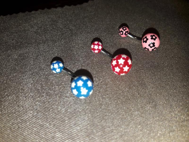 Пирсинги в пупок, красный и синий-стандартные, по -50грн, розовый короче, 30 грн.