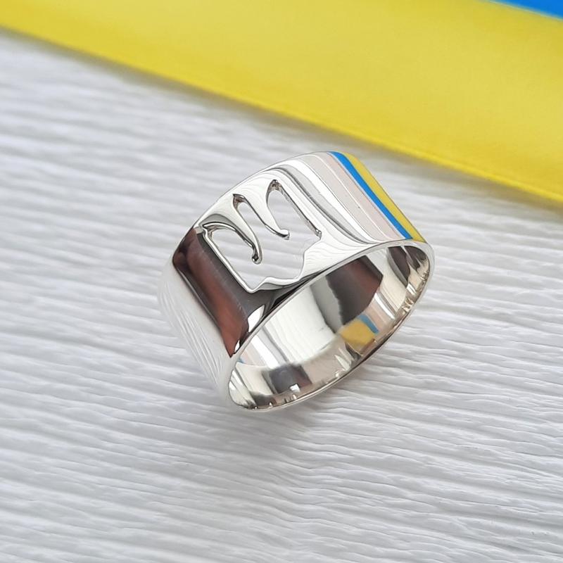 Срібний перстень з національною символікою "Герб України". Середня вага перстня - 4,22 грам срібла 925 проби. Вага перстня залежить від розміру та може коливатися в одну чи іншу сторону. Ширина перстня - 10 мм. В наявності всі розміри.