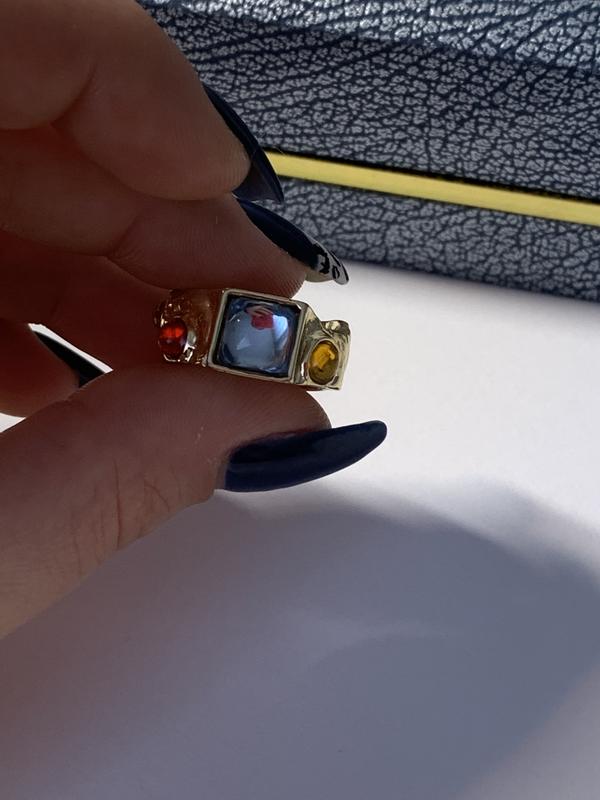 Розмір 7.3 на 4 зображенні є заміри, всього на обручці 4 камінці, 2 жовтих, 1 червоний та синій, біжутерія