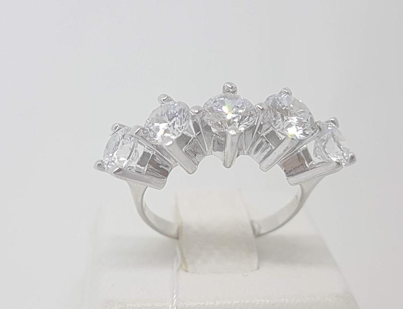 Серебряное кольцо 925 пробы с фианитами, покрыто родием Средний вес изделия - 4,42 г Вес конкретного изделия уточняется при подтверждении заказа