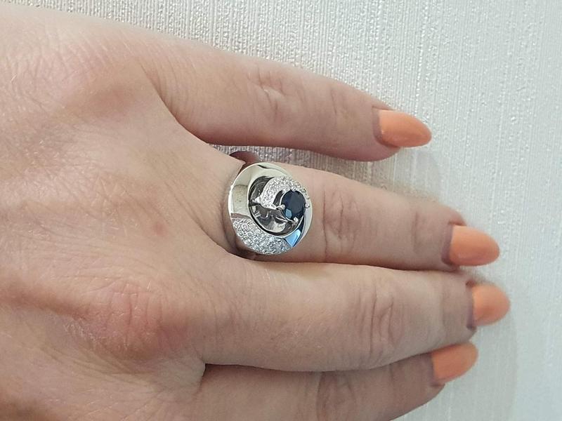 Золотое кольцо с бриллиантами и сапфиром. артикул 11270 17,5