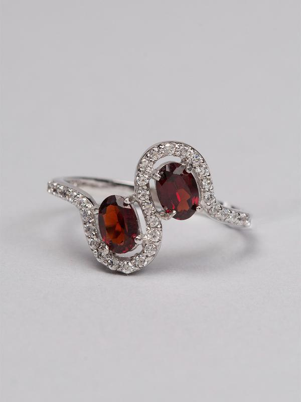 Характеристики кольца: - Металл: серебро - Проба: 925 - Покрытие: родий - Средний вес: 2,16 гр - Вставки: гранат, циркон